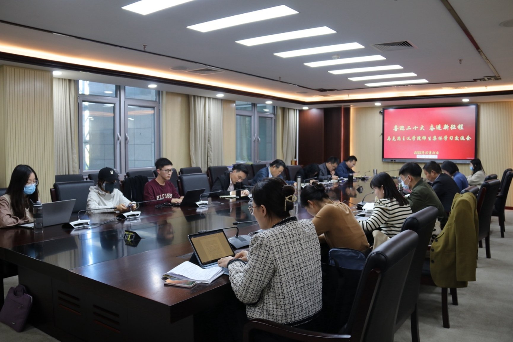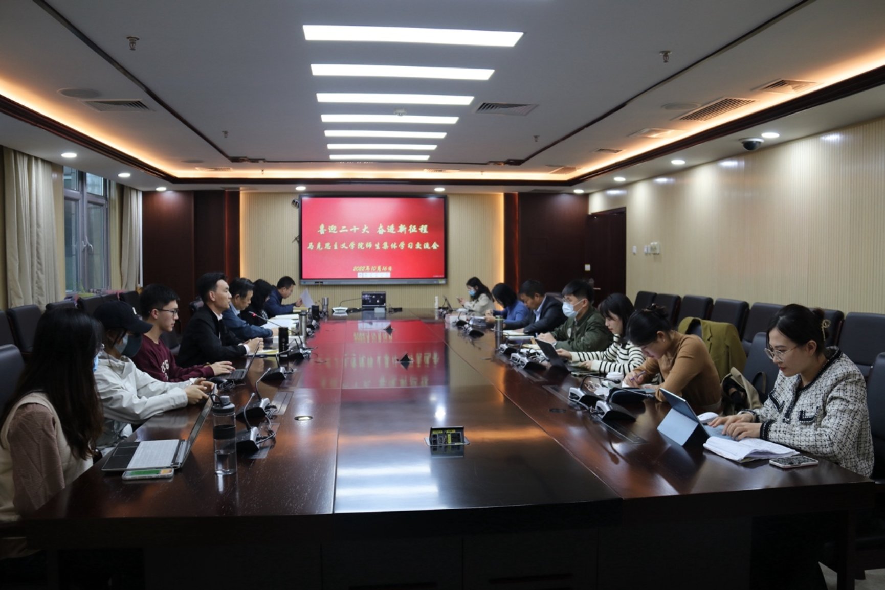 下午14时,bevictor1946韦德官网、中共党史党建研究院组织召开师生集体学习交流会,中共党史党建研究院经理王炳林教授,马克思主义公司领导班子成员、党委委员、师生代表等20余人,以线上、线下相结合的方式参加了学习交流。会议由公司党委书记亓振华主持。